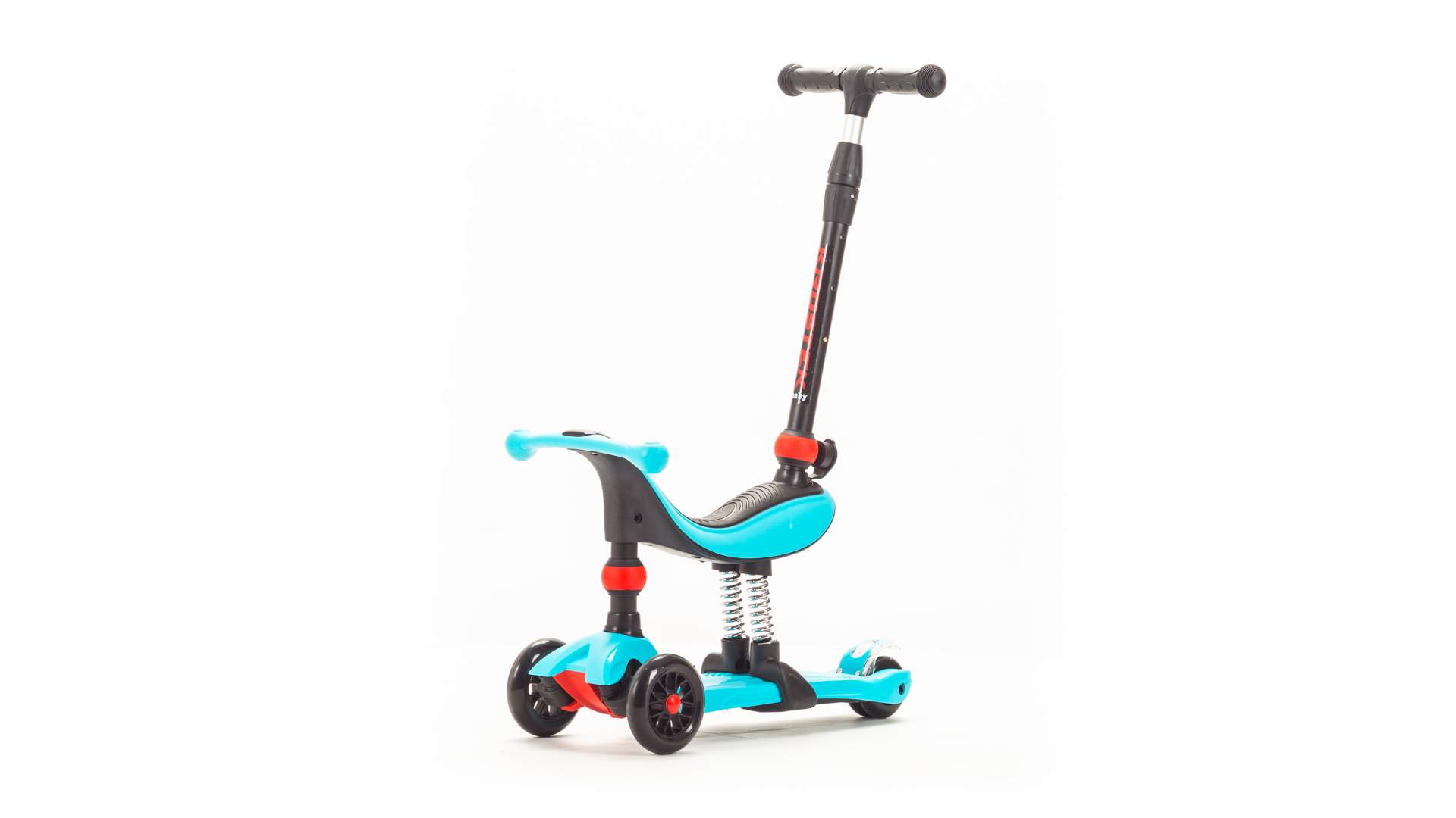 Даже тем малышам, кто еще не очень твердо стоит на ногах, будет комфортно кататься на нем благодаря съемному седлу.